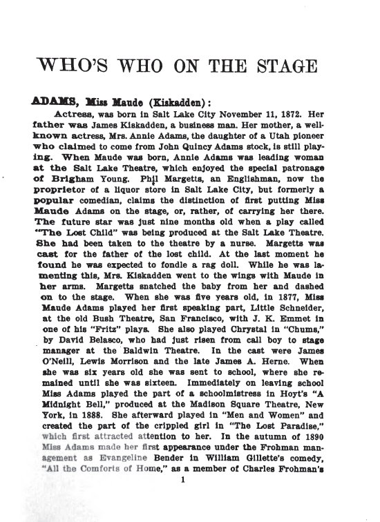 Who's Who on the Stage, 1908