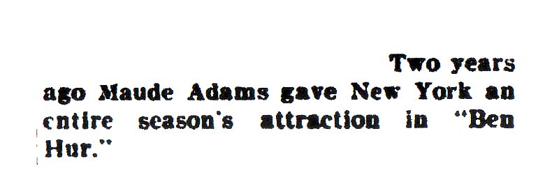This article, from The Mansfield News, May 12, 1900, refers to Maude Adams being in a production of Ben Hur , and that it ran in New York for an entire season. I have found absolutely nothing else that indicates she was ever in such a play.