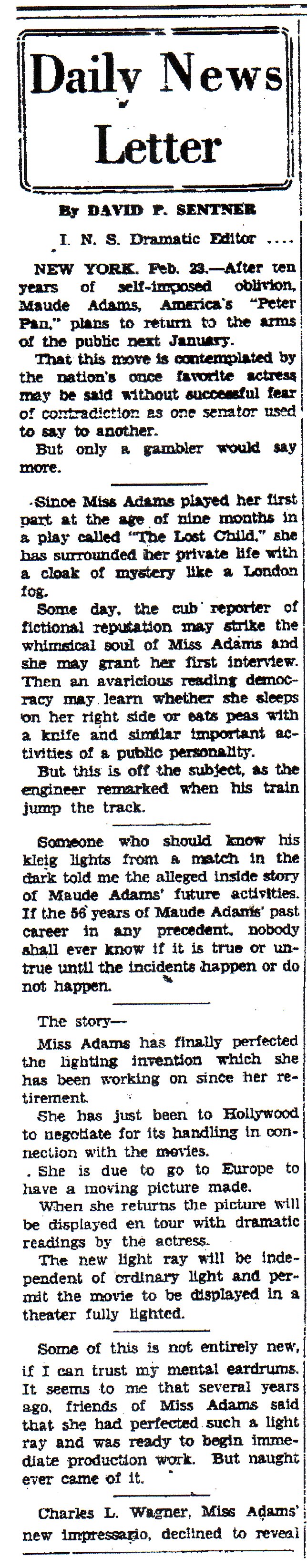 Coshocton Tribune, Feb. 24, 1929 |