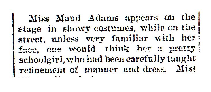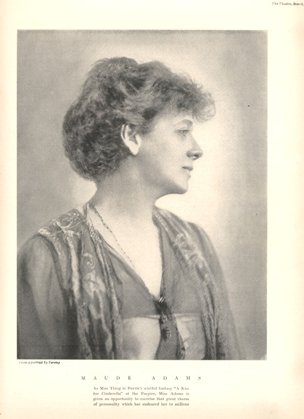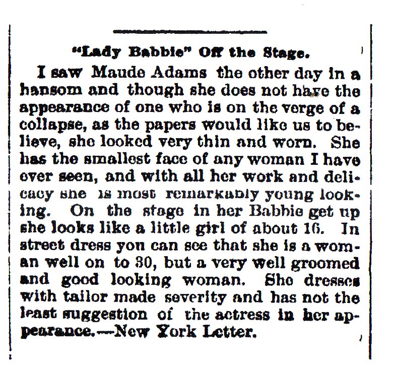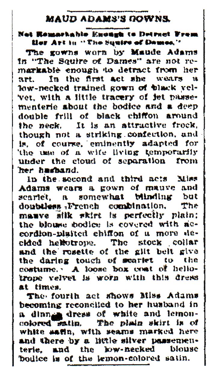 Just as in today's world, during the time Maude Adams was very popular people wanted to imitate her and so various fashions ended up being named after her. the other type of reference is to the clothes she is wearing, just like the tabloids describe the clothes famous actresses of today wear.