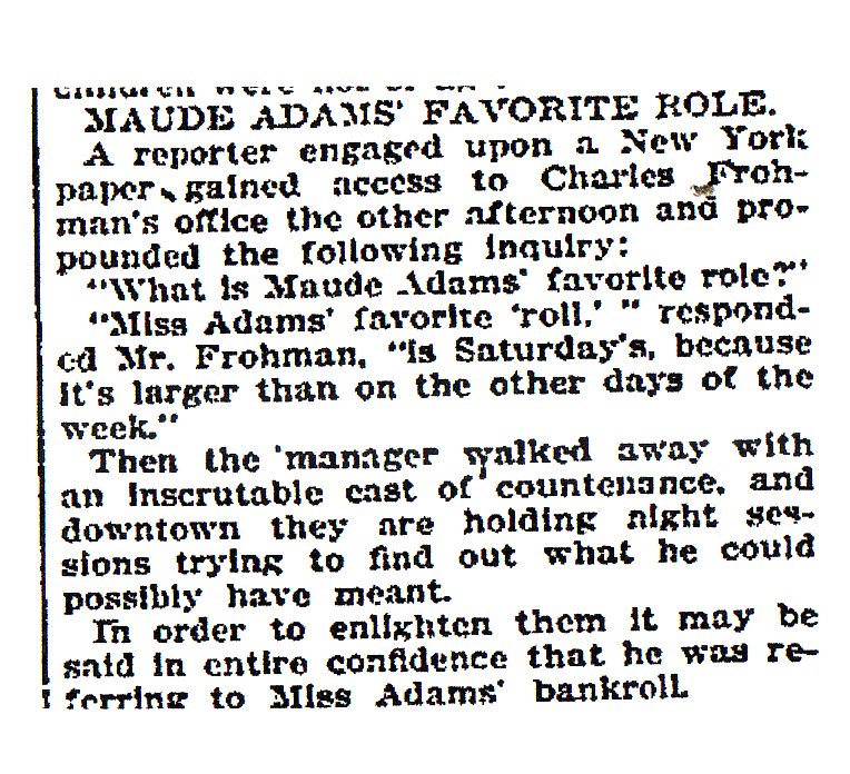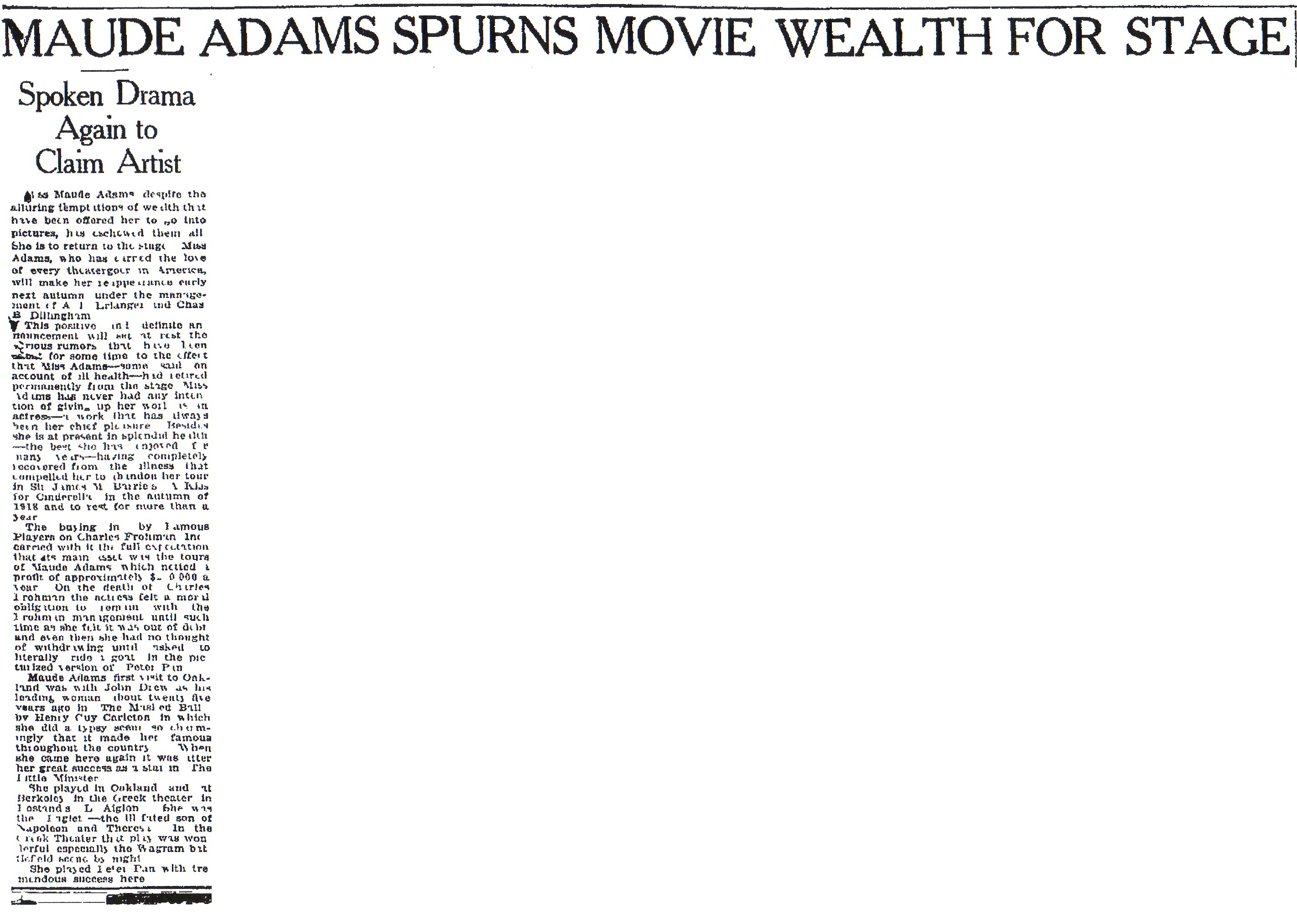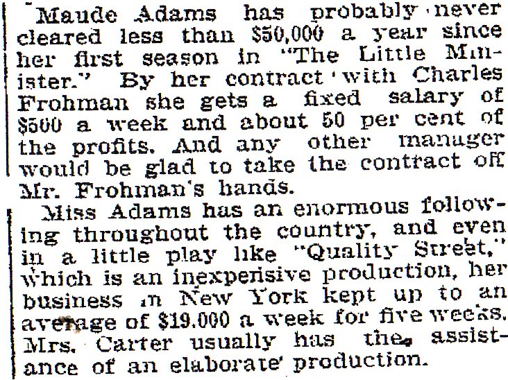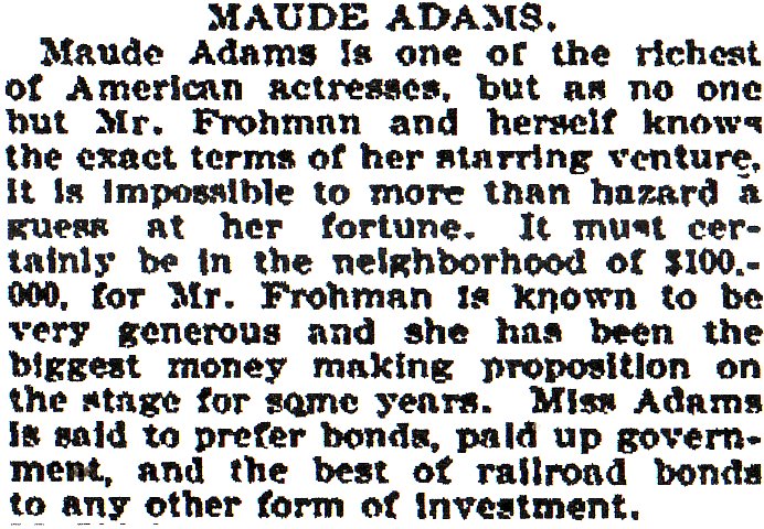 Without exception, every source that I consulted held that Maude Adams made a lot of money, and that she was also a very generous person.