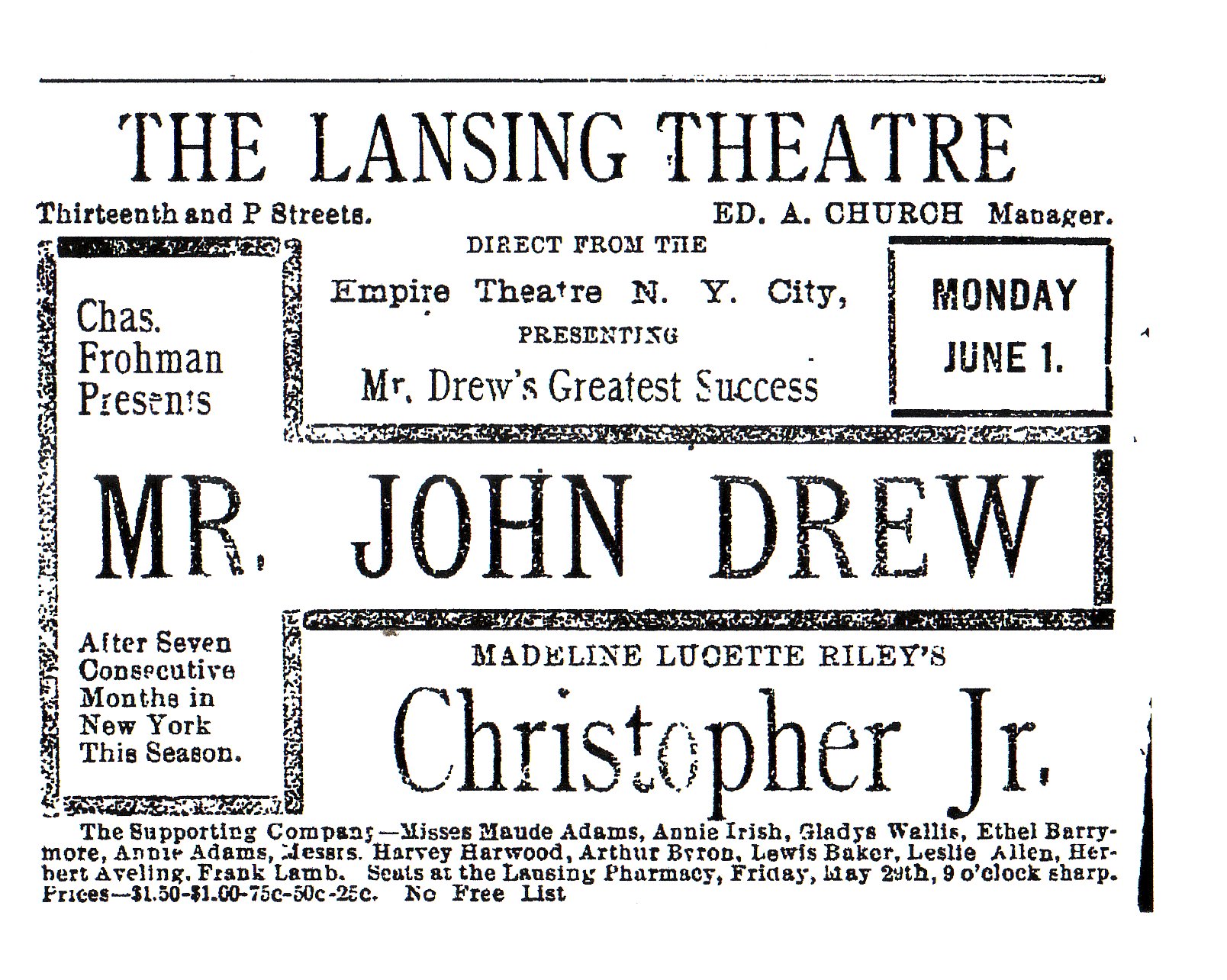 =====My Years on the Stage by John Drew; E. P. Dutton & Company, 1922=====