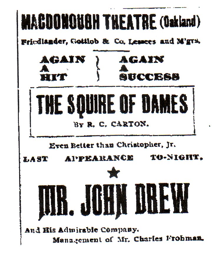 We did an English version of L'Ami des Femmes by Dumas Fils. The adaptation was called The Squire of. Dames and was made by R. C. Carton, the author of Lord and Lady Algy, Lady Huntworth's Experiment and many other successful plays