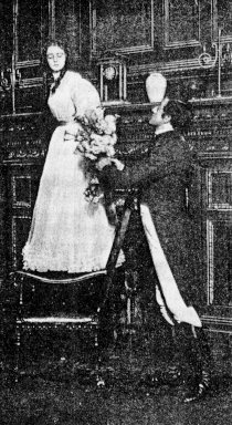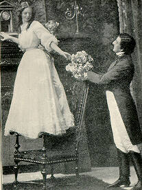 "Sir Jasper finds the boy and a reconciliation is effected, but in the meantime the Queen's procession has passed their windows and not one of them has seen it. As the girl and her boy lover start away, Dolly places a sprig of rosemary in Sir Jasper's hand. - ,This is for remembrance."