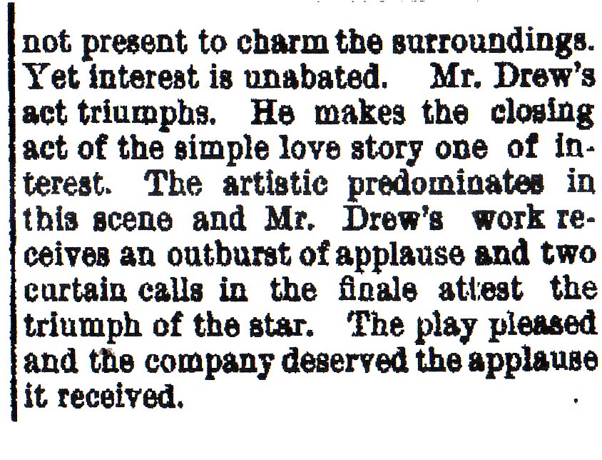 The first two articles are about how well the play was liked. The third and fourth entries are from the same article and seems to praise Maude Adams quite highly. The last article appears to be part of the play itself.