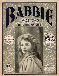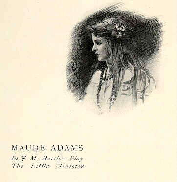 When James Matthew Barrie ( 1860-1937), beloved Scotch writer, visited New York, Charles Frohman was seeking a play for Maude Adams. With considerable change, The Little Minister, one of Barrie's early novels of Scotch life, was dramatized, and Lady Babbie, the wild gypsy with red rowans in her hair, came to the stage of the Empire Theatre, September 27, 1897, to give Maude Adams her first starring role.