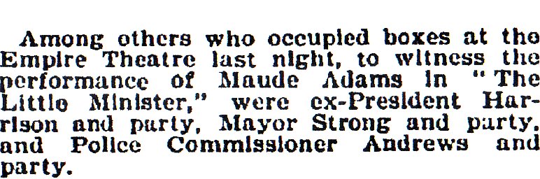 "The Little Minister" ran at the Empire for three hundred consecutive performances, two hundred and eighty-nine of which were to "standing room only." The total gross receipts for the engagement were $370,000-a record for that time.