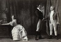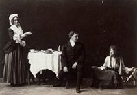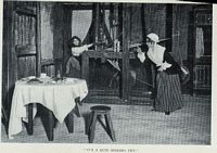 The New York Dramatic Mirror ( October 2, 1897) found The Little Minister "at times prosy and inactive, and it frequently verges upon incoherence. Miss Adams . . . gave life, color, and rare delicacy to the highly improbable Lady Babbie." The play was better received in London, where it opened on November 6, with Cyril Maude and Winifred Emery. The London Graphic ( November 13, 1897) praised Barrie's "removing what was merely episodic, giving to his story a compactness which it did not have before, and concentrating the interest upon its real dramatic feature, which is the development and final triumph of the love of the Little Minister for his wild and wayward temptress." Bernard Shaw, who had seen the Shakespeare play the night before, reported: "The Little Minister is a much happier play than The Tempest * . Mr. Barrie has no impulse to throw his adaptation of a popular novel at the public head with a sarcastic title ( As You Like It * ), because he has written the novel himself, and thoroughly enjoys it . . . The popular stage, which was a prison to Shakespeare's genius, is a playground to Mr. Barrie's . . . He has apparently no eye for human character; but he has a keen sense of human qualities, and he produces highly popular assortments of them." Barrie's combination of nine-tenths fun and one-tenth sentiment struck Shaw as most toothsome; he felt that The Little Minister "has every prospect of running into the next century."