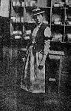 'With a flat old straw hat jammed on tightly drawn hair, which is pulled back and tied into a doughnut loop, Miss Adams was ludicrous yet pitiful in the picture she made. The loose old garb of the hard worker at starvation wages hung limply about her seemingly flat-chested and stooping figure. She walked with the flat-heeled, short-stepping gait of a burden-carrier, and was the extreme opposite to the light-hearted, dancing sprite of gypsy Babbie.'' Dramatic Mirror, Feb. 18, 1905