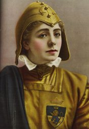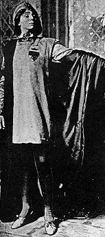 Miss Adams herself, playing with a fine sense of delicate values, gave to the figure of Chicot the charm of youth, high spirits, and sympathetic sensibility. She was a picture to look upon in a costume of cloth of gold, her trim and slender little figure moving lithely and gracefully through the play, her richly pliant voice now gently sooting in the tend love passages, now manfully defiant when the deed of daring must be done. She has succeeded better than might have been expected in getting away from the manner of Peter Pan, a difficult matter in a role where to be a boy one must have boyish ways—and the Peter Pan way has seemed almost like second nature to this actress. But here her playing is nearer to the manner of her exquisite L'Aiglon, a role recalled especially during the poetic contest of 'The Jesters.'..Her characterization is in fact a very lovely thing, a thing to be seen often and to be remembered.1 New York Times, Jan. 16, 1908