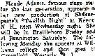 The first article is an ad for a performance of the play. Note that the most expensive seat is $2.50. This is for the original series of performances, whereas the second article is for a revival of the play, in effect, years later (which I have as play 76 in my listing).