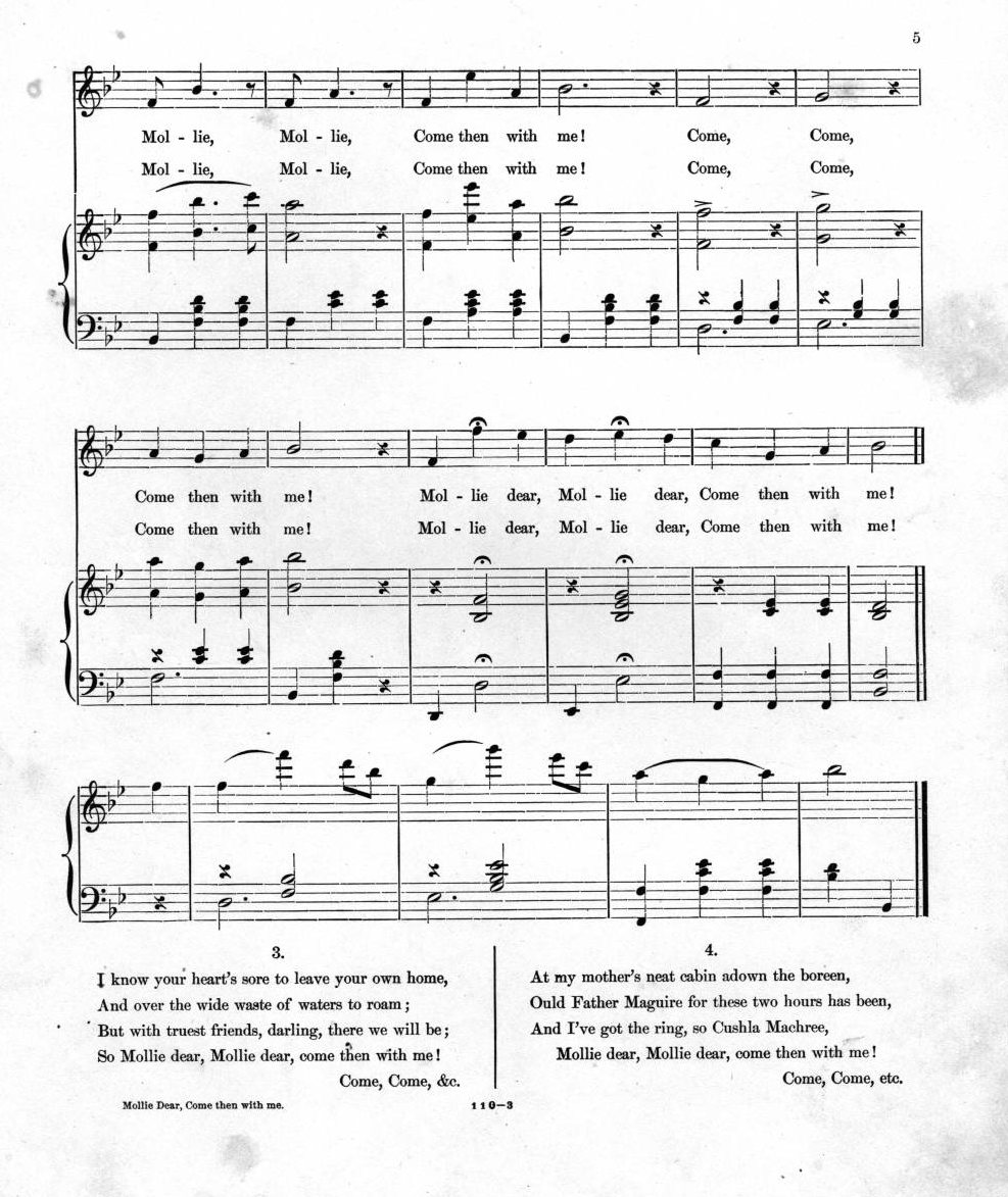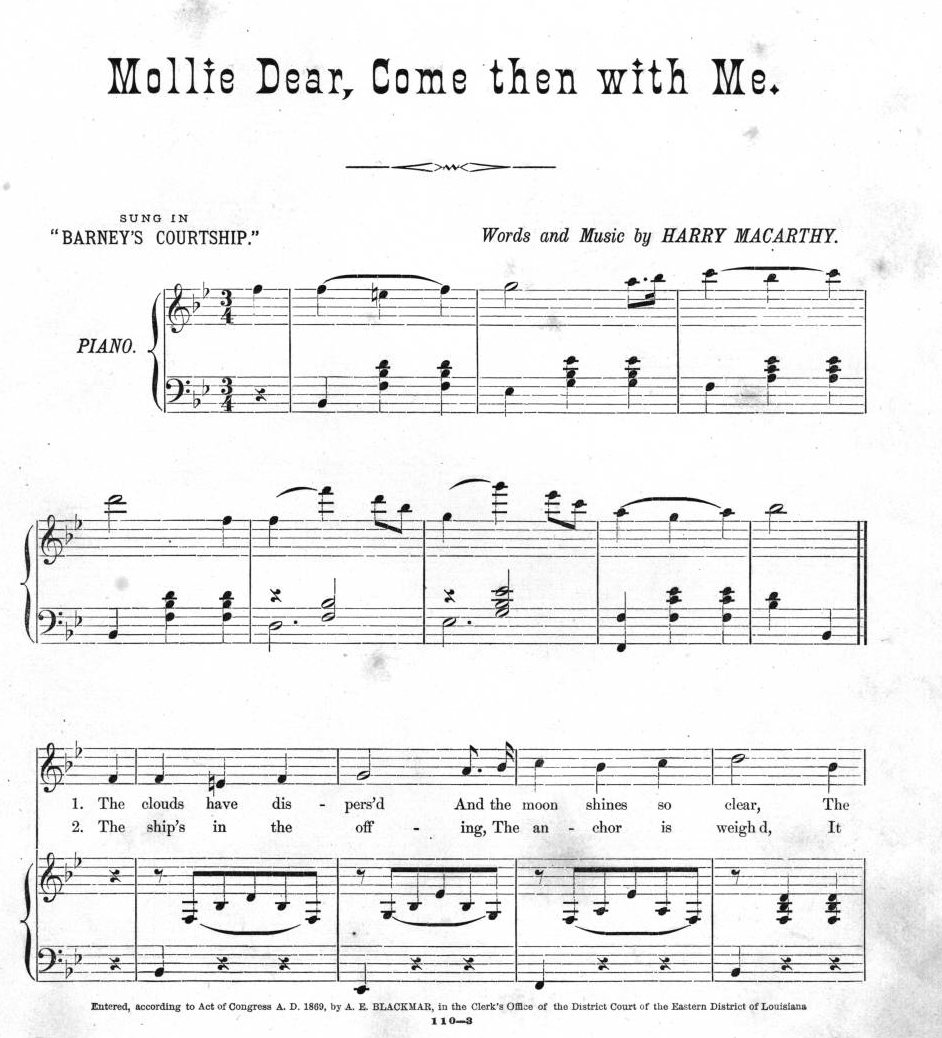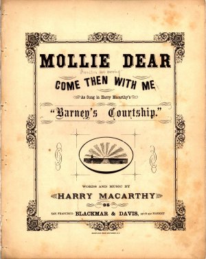 The play is by Harry Macarthy and is in one act. The plot is basic. Mollie wants to marry Barney but her mother opposes the match. She sets a condition for marriage that anyone wanting to marry Mollie basically had to be wealthy, which Barney is not. They is a lot of singing in the play and it ends with a duet between Mollie and Barney saying that they intend to run away across the sea to America.