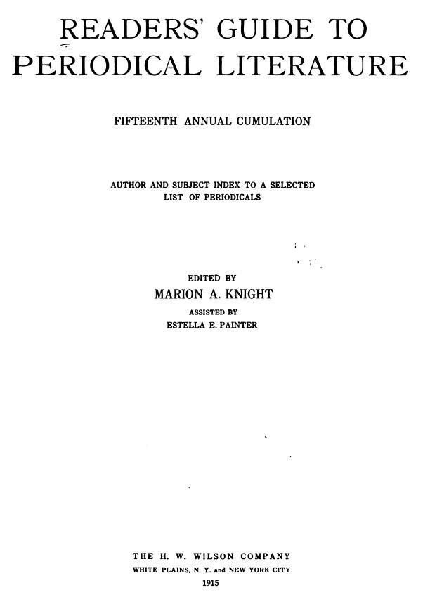 READERS' GUIDE TO PERIODICAL LITERATURE,1915