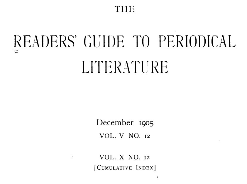 READERS' GUIDE TO PERIODICAL LITERATURE,1905