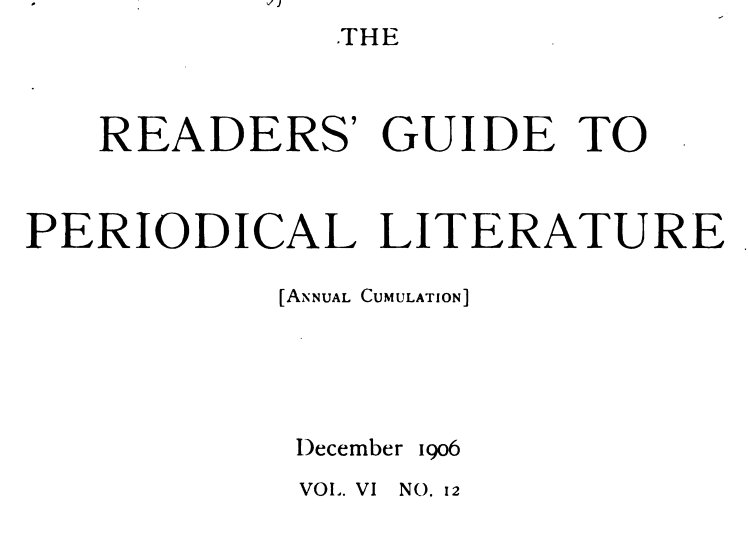 READERS' GUIDE TO PERIODICAL LITERATURE,1906