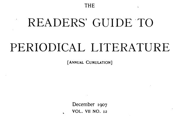 READERS' GUIDE TO PERIODICAL LITERATURE,1907