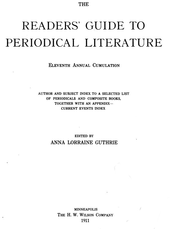 READERS' GUIDE TO PERIODICAL LITERATURE,1911