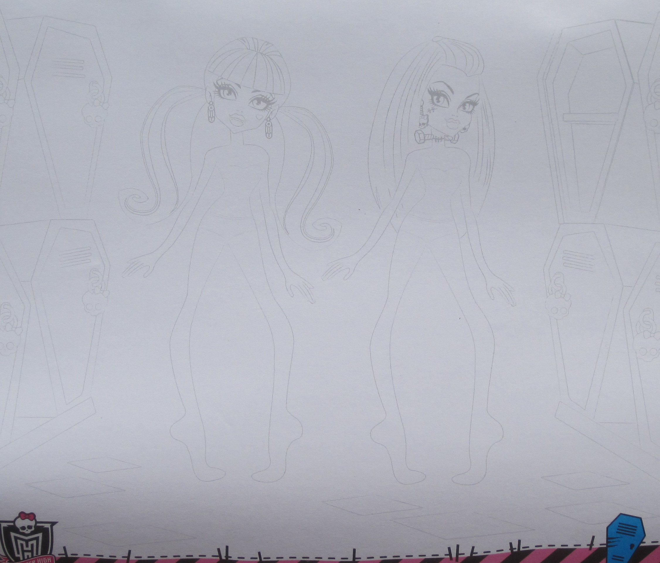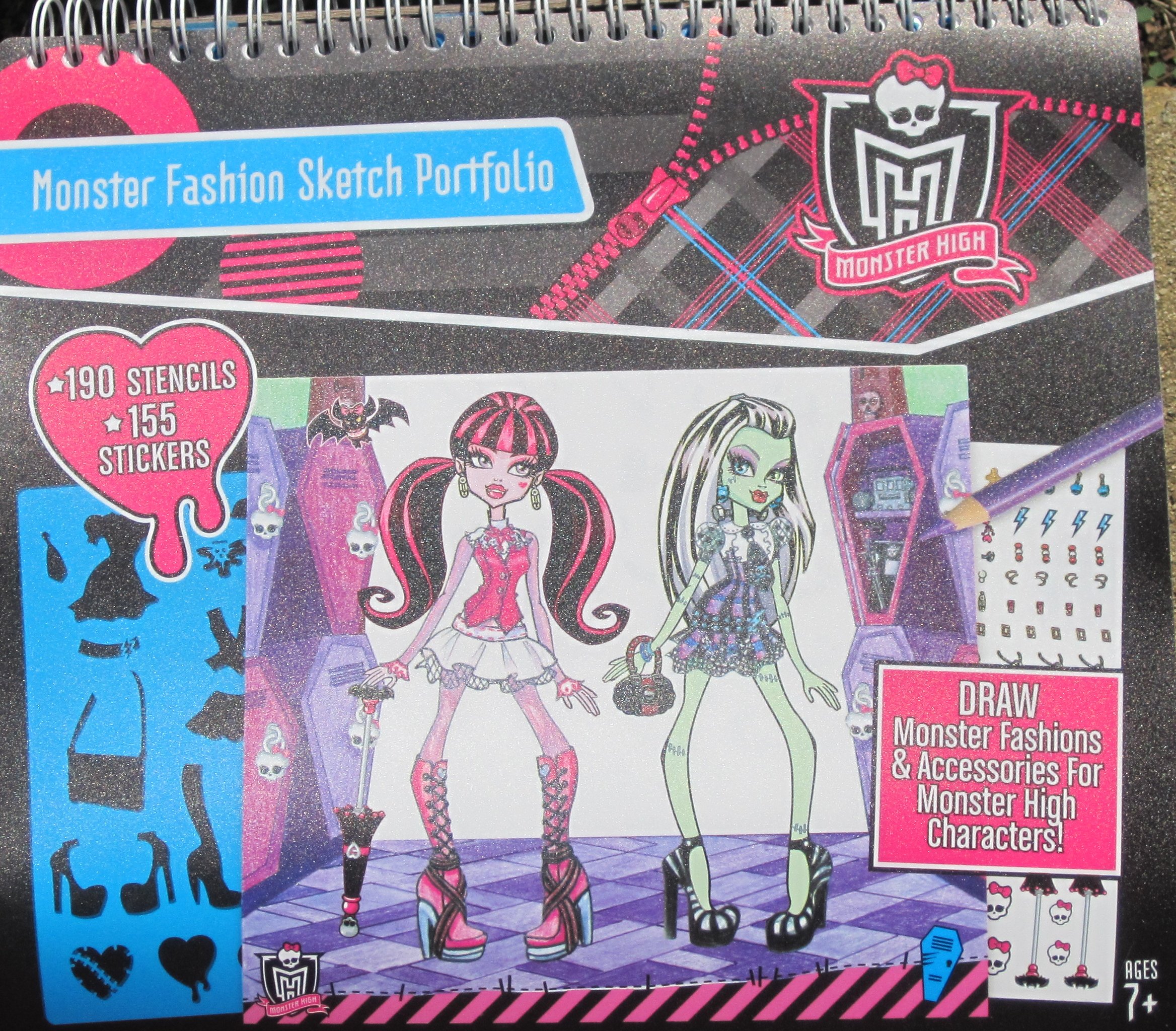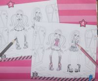 This is a neat item. It has a number of stencil pages and a good number of pages with very faint drawings of some of the Monster High people. You can use the stencil to put whatever kind of clothing you want on them then color them in using pencils or markers.