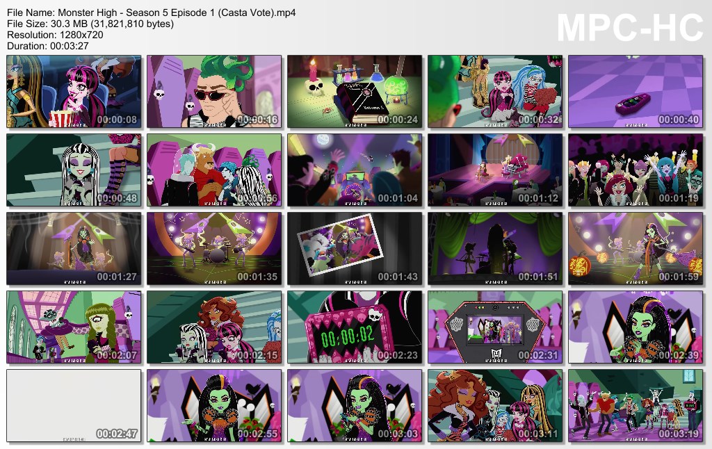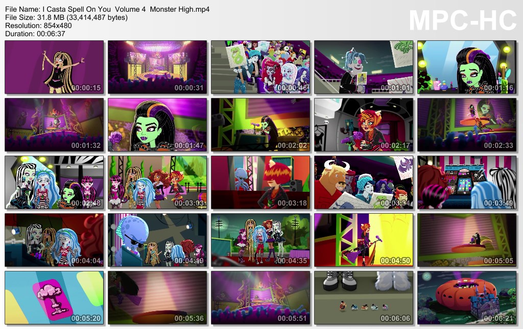 The girls are voting online to get Casta Vote and her group to perform at the school. One of the guys watches a video about them on Frankie's phone. Her singing has a side effect, though. She can turn her audience into animals depending on the words in he song. The group stopped touring but once a year they do a special concert and the girls want it to be at Monster High. The school wins but it was because four of the boys also voted. (At the start they had no idea who Casta and the Spells were.)