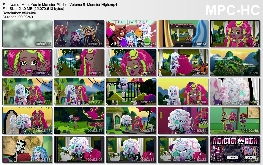 The girls watch a videe about Monster Picchu. Marisol Coxi is narrating the video.She's in the monster exchange program from there and will be coming to Monster High for a semester. She's Abby's cousin so Abby goes there to meet her and come back to Monster High with her. That is, in a week. Abby decides to stay there after seeing so much of the place with Marisol