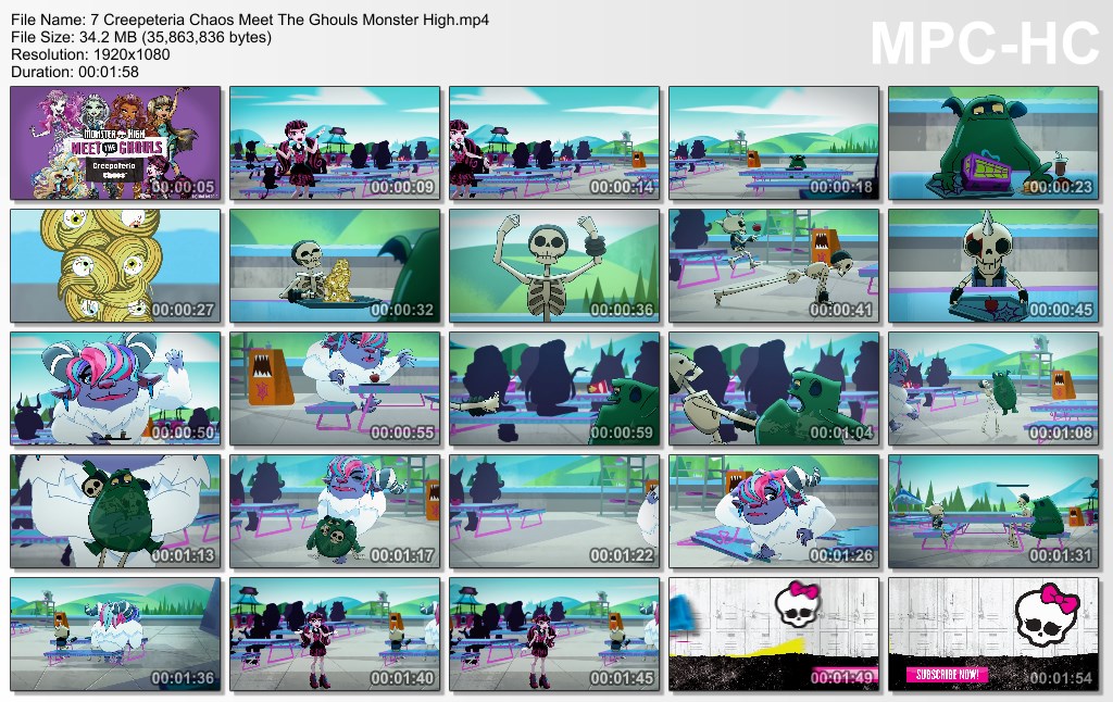 Draculaura is the narrator in this episode. We meet two skeleton monsters plus two others.