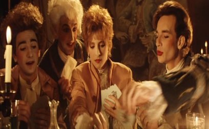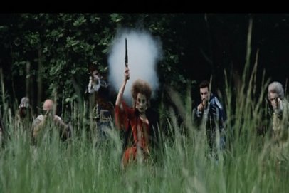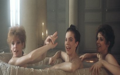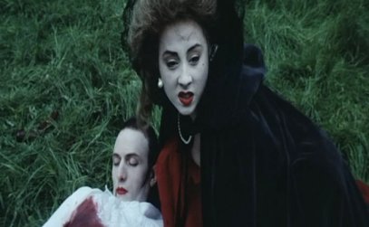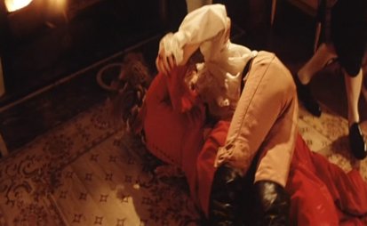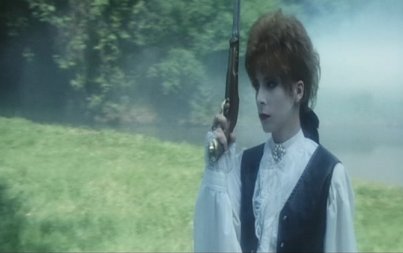 A major cat-fight follows, complete with blood.The Farmer character and the lover escape on a horse. Somehow, the jealous lover gets a whole gang of armed thugs to kill the guy that the Mylene Farmer character had sex with earlier and her and get out faster than the guy's horse can ride to ambush the lovers.