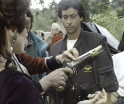 One of the historians, I think, demonstrates to the jealous lover just how to shoot the pistol after she had tried and the pistol didn't go off.