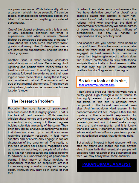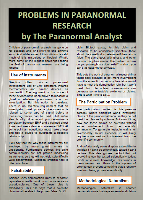 The article is about skeptics not accepting research materials or approaches of people investigating paranormal things. They question the use of various devices by paranormal investigators including EMP detectors. I would add to that EVP, electronic voice phenomena.