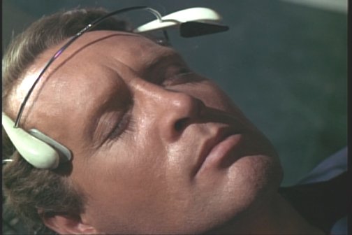 #2's control area with lots of blinking lights. The same type of thing used in Star Trek of that time period. The same type of show done today would probably include some very special effects, but then again with advances in science #6 would stand much less of a chance of resisting his captors or of getting away.