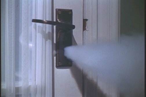 In this first episode a man resigns rather forcefully and returns to his flat to get his things together, but before he can leave a mist sprays through the door and he passes out.