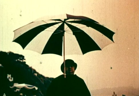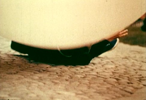 A totally additional scene here of Number Six being chased by Rover at the edge of the beach.