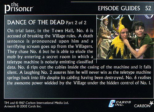 #2 takes the radio and later puts #6 on trial for its possession. He is found guilty and the people at the Carnival chase him in some form of rather insane manner. He manages to get away, but again has to confront #2 who manages to once again show that she is the one in charge.