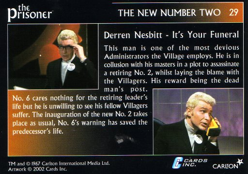 Number Six goes to warn Number Two about the plot to kill Number Two. He has no idea it's all a setup.