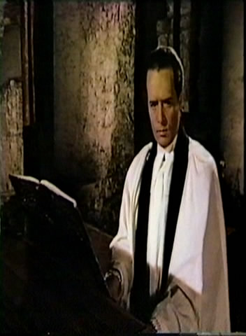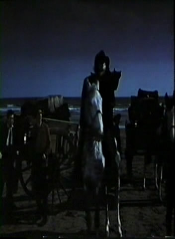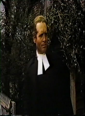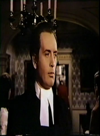 One of the naval press gangs. Dr. Syn is holding a Wednesday service. One of the Scarecrow's men enters and throws a knife with a message warning all able-bodied men to hide.