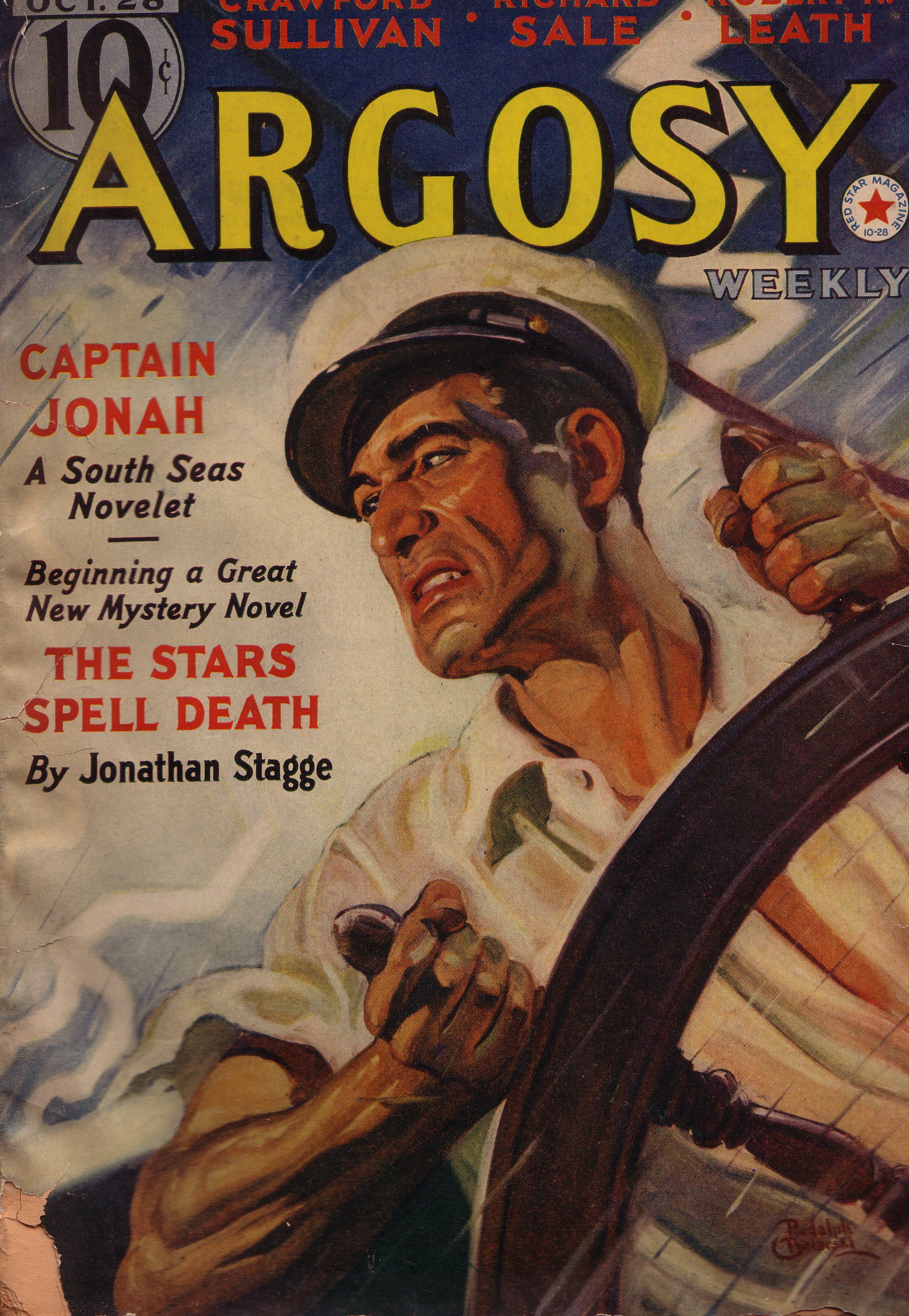 Captain Jonah: “Presenting the Calamity Trio, a hair-trigger group of rascals disturbing the South Seas with a cargo of one white rat, one concertina, and an assortment of ingenious ways for starting-and finishing-trouble. With particular attention to Pat Blake, a skipper who thrives on shipwreck.”