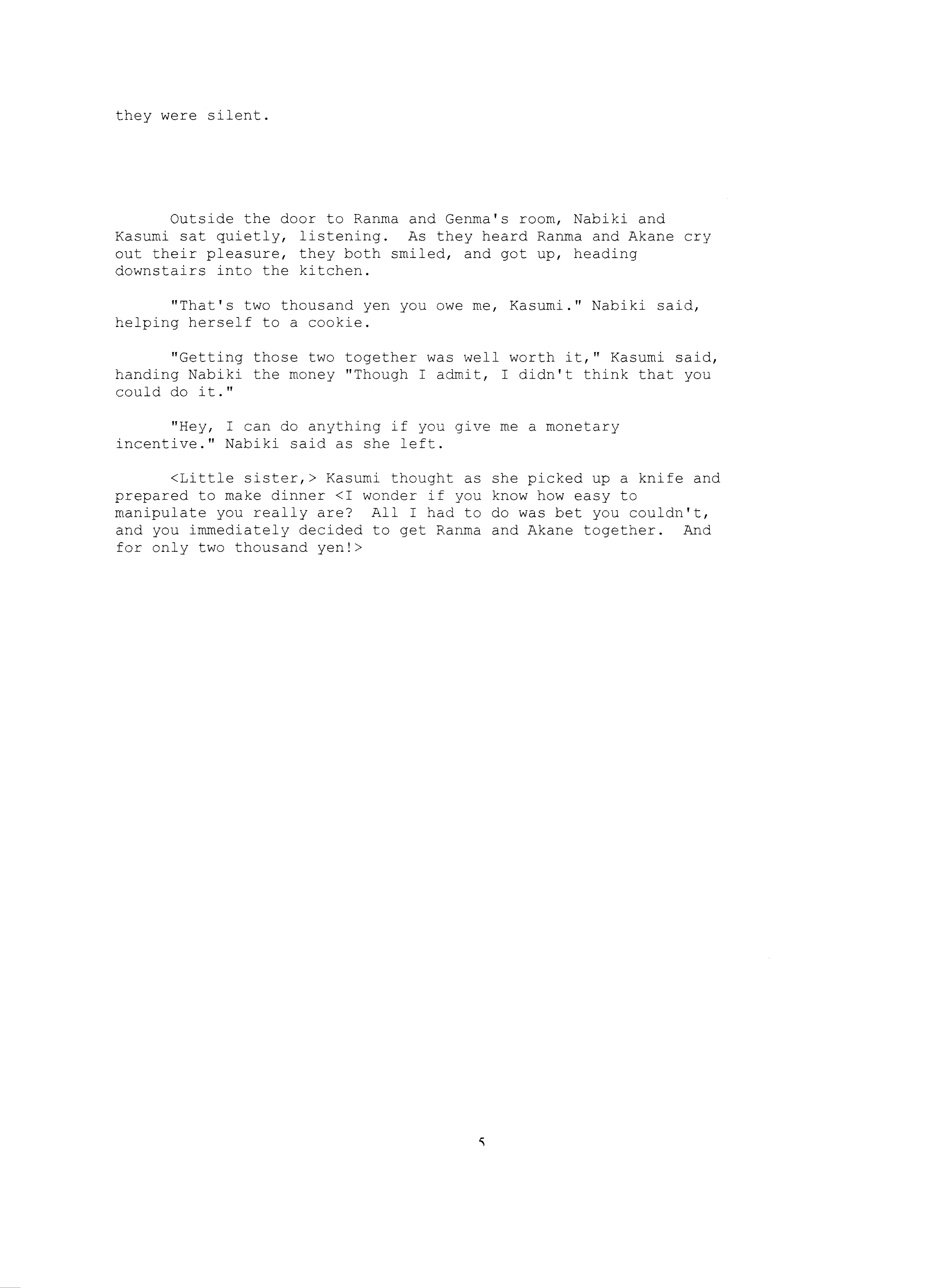 This is one of the stories that the original link died and I haven't been able to find another working link for the story. What I am doing here is putting up my printout of the original story. Please note: I did not write this story.