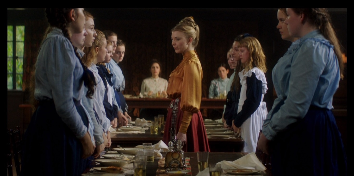 Then there's a jump to one year earlier when Irma arrives. Sara also arrives. This is when Sara starts sharing a room with Miranda. Miranda is caught coming in from running around the grounds with no shoes on. Her palms are hit with a cane numerous times as punishment. The beating (also not in the book or movie) is quite cruel and the teacher seems to enjoy doing it.