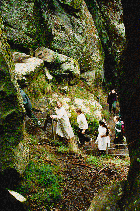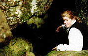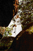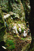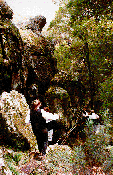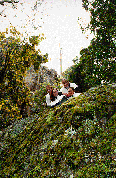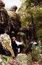 "Although it was raining in Melbourne there was only a minor threat from the clouds up north. The girls ran all over the rock, finding their way down through the crevices and up to the top of the spires. Although I've been to Hanging Rock quite a few times I was amazed by the mass of tunnels and caves which I hadn't noticed before. The damp added an atmosphere which I hadn't experienced before and the girls all running around, exploring in their white lace seemed so right. A number of other people there commented to them about their dress-maybe it should be an added feature."