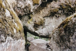 The Hanging Rock is in the centre of the picture and has that name because it's actually a large boulder "hanging" there, just resting on top of the rocks beneath it.