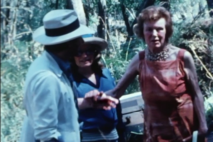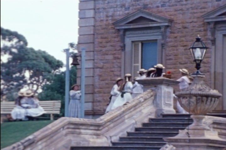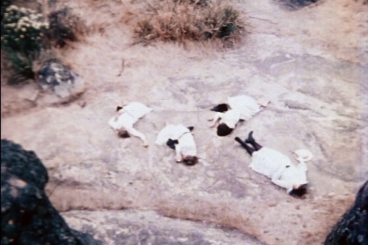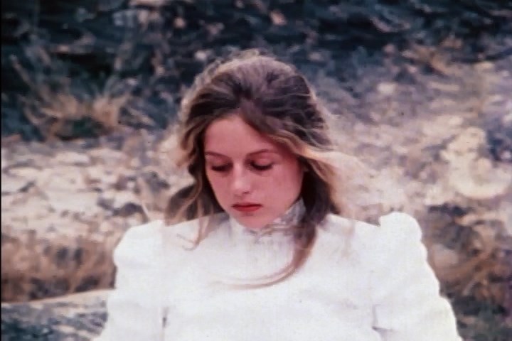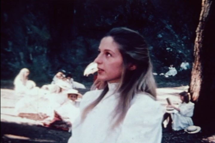 The woman talks about Joan Lindsay's book Picnic at Hanging Rock. She says the film has now been made into a movie by Peter Weir. It shows the three girls walking, almost hypnotized, further up the rock while Edith screams and runs away. (One of the main questions is exactly why did Edith scream? She must have seen something perhaps frightening that would cause her to do that.)