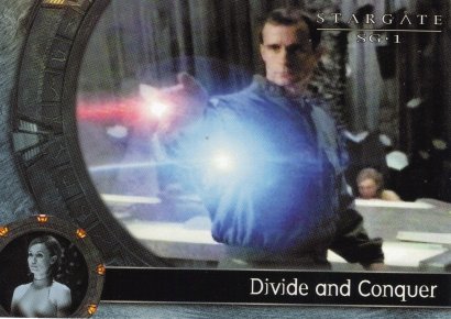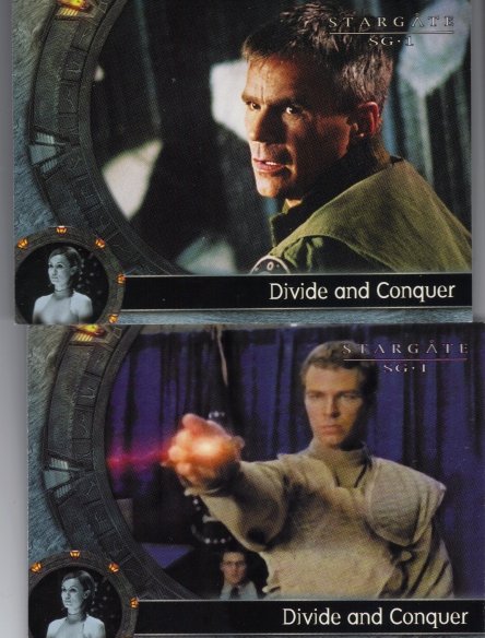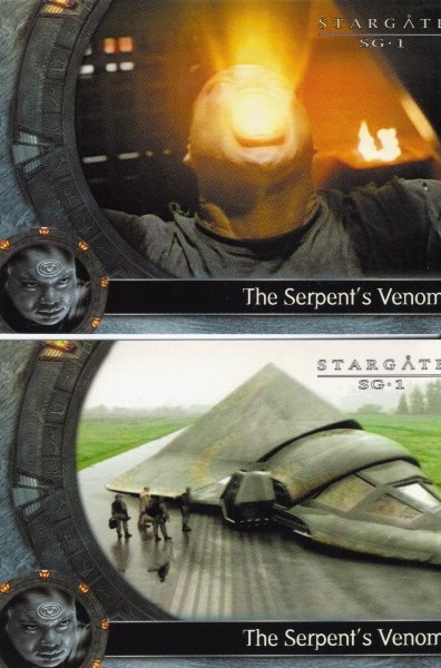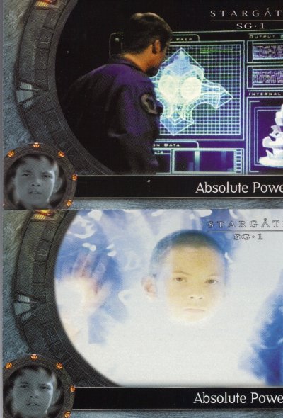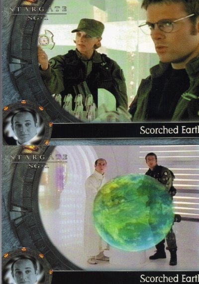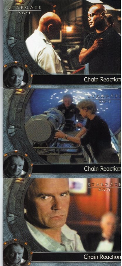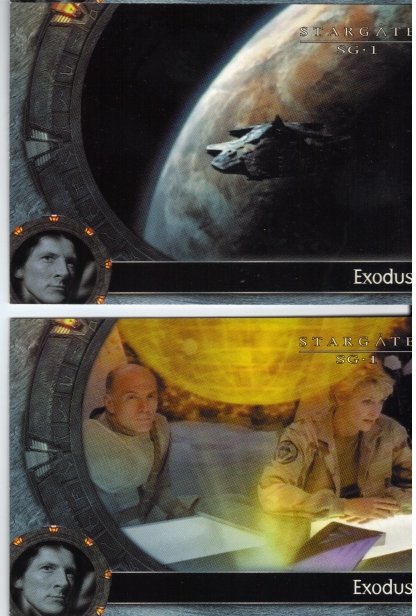 Three cards from the same episode. The replicator threat still remains to Earth, and the Asgard are also having problems with them.