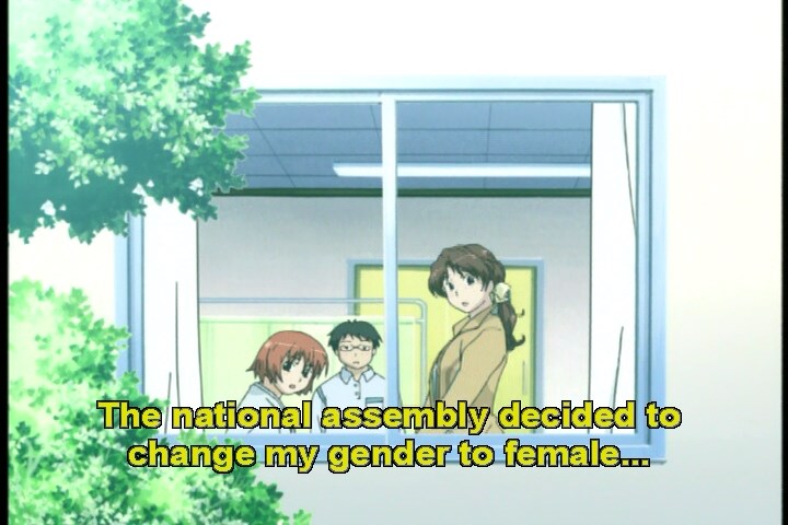 Tomari is having more difficulty with the change than Hazumu. She then decides to help Hazumu become a 'real' girl, having the right things and knowing how to behave like a girl. Tomari still refers to Hazumu as 'him.' Something happens that helps Tomari deal with it, though.