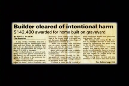 The first couple sued the developer for not revealing their home was built on a graveyard. They won at first, but then the verdict was overturned and they had to pay $50,000 in court costs.