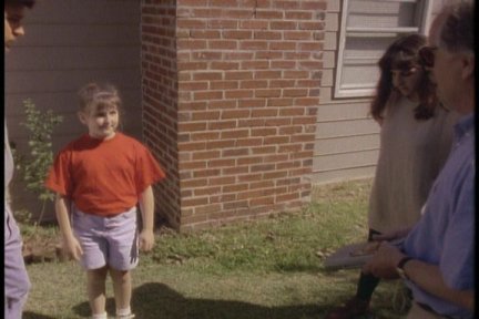 One of the neighbors brings over some pictures and the girl is able to identify the first person she saw.