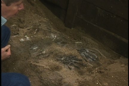 The couple had a back-hoe operator dig down a ways and then they dug by hand. They found pine boards and a skeleton. They called the Sheriff's department in and they did an exhumation. They also found a second coffin with a skeleton.
