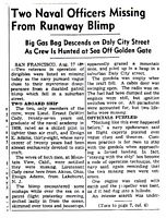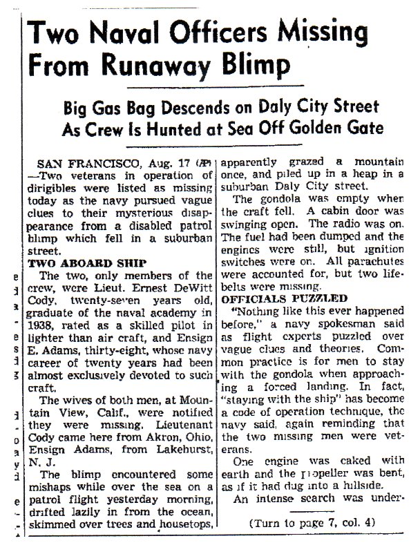 On August 16, 1942, one of the airships crashed with no one on board. It was supposed to have a two-man crew, but they had vanished. The two men were never found.