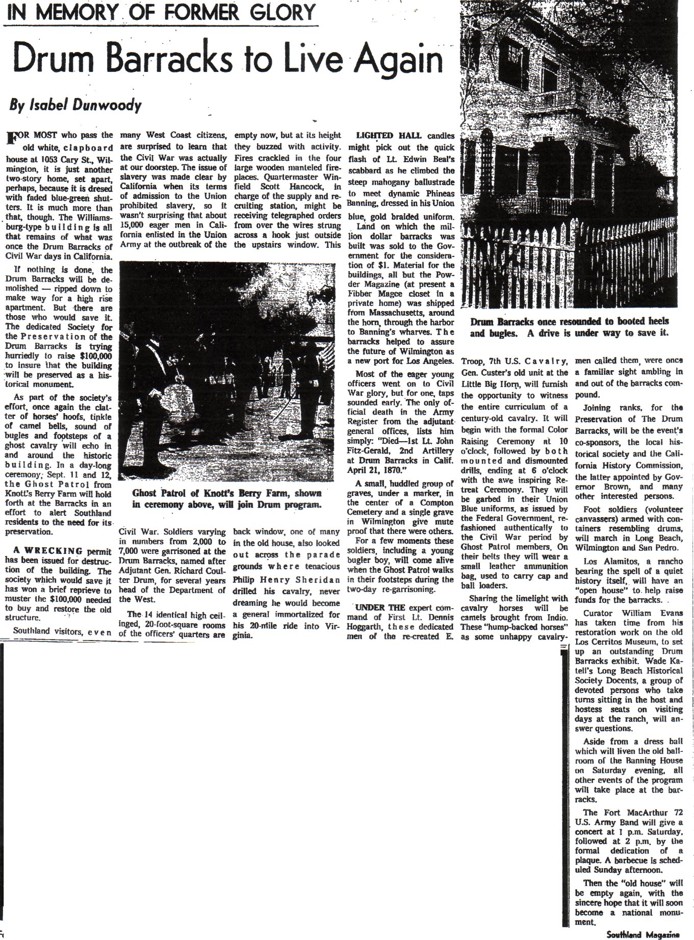 From the Independent Press-Telegram, California, Sept. 5, 1965, an article on the restoration of the Drum Barracks (although nothing is said about ghosts.)