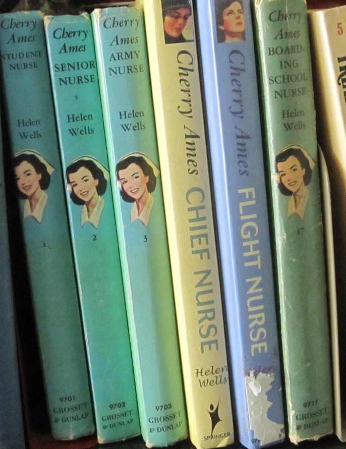 This series of books is about Cherry Ames, a young woman who decided to make nursing her career. The first books follow her through her nursing training and, from there, they follow her adventures as being a nurse in the Army, a boarding school and various other places. She usually is involved in solving some kind of mystery at each place.