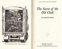 I will be comparing two editions of the first volume in the Nancy Drew Mysteries series. One will be the 1930 edition, and the other one will be an edition copyrighted 1987 which contains text that had been revised in 1959. Fans of Nancy Drew know that the first 34 Nancy Drew books were eventually re-written, her character changed somewhat and various stereotypes removed. The number of chapters was also cut from 25 to 20, and the total page number also decreased.