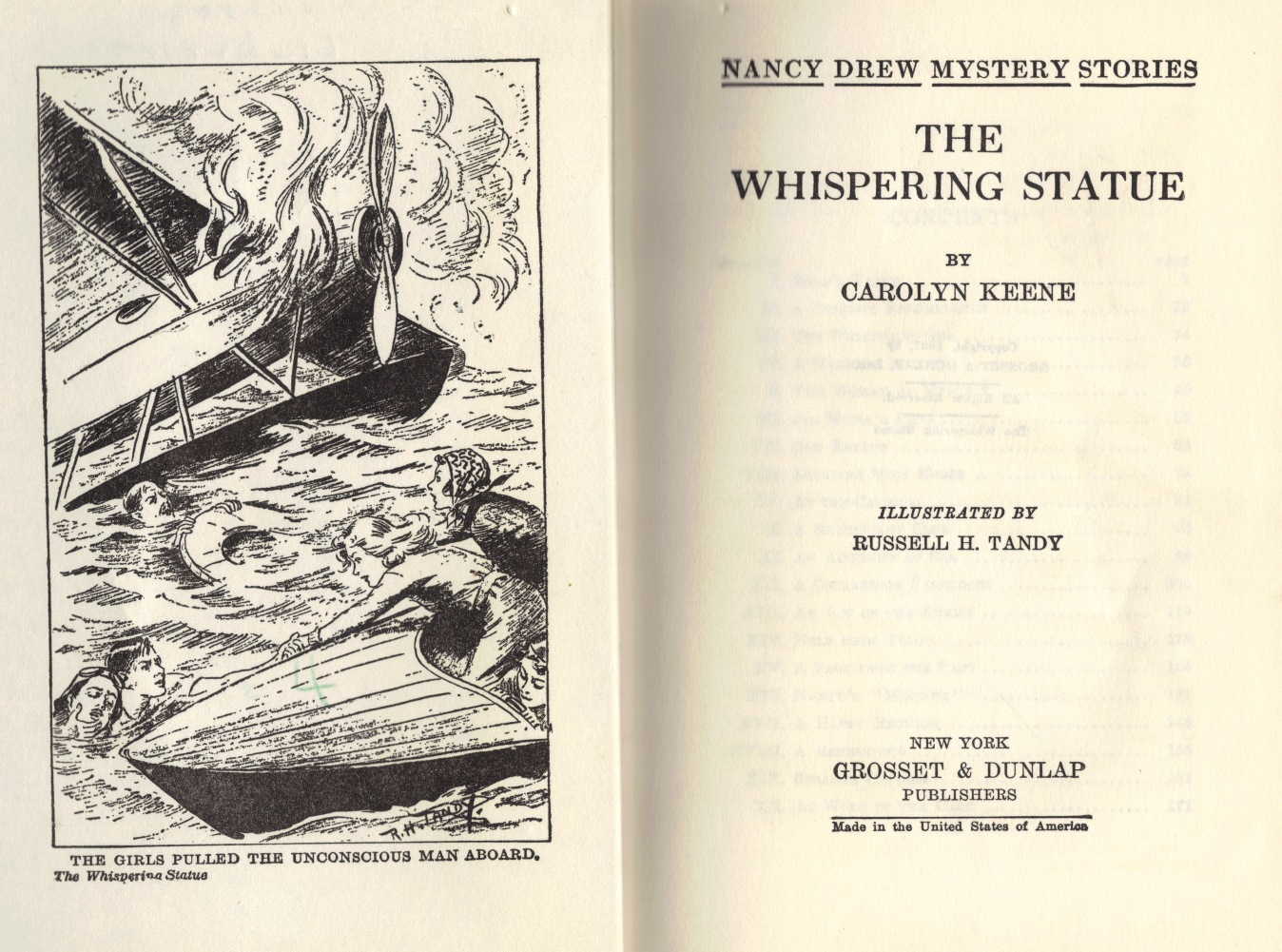 Nancy and Ned are in a boat race. Some boat cuts they off but they win. They go to a party and see a statue. Nancy says it's whispering.